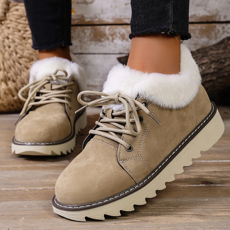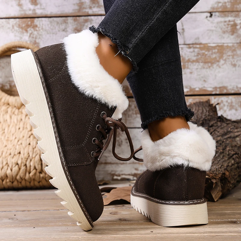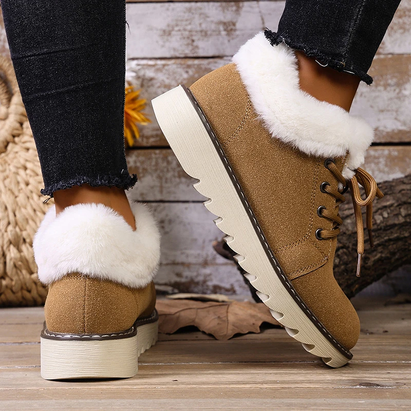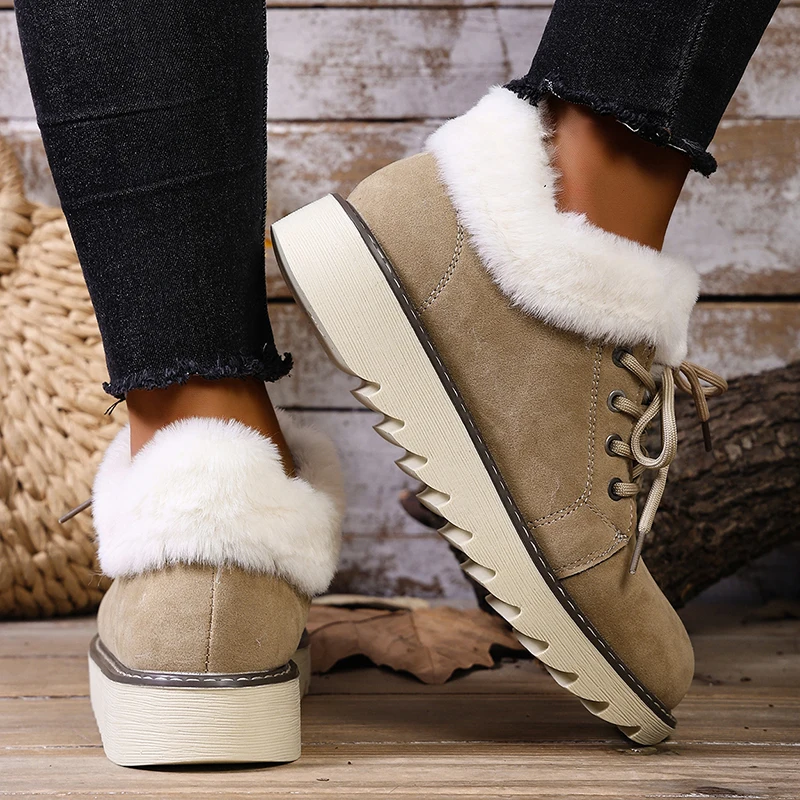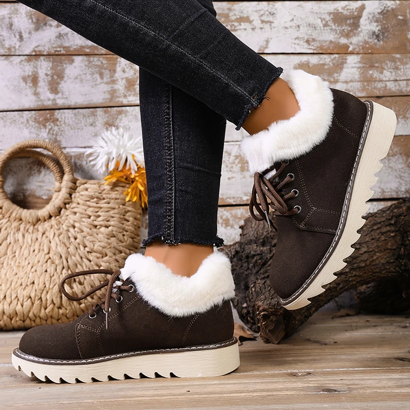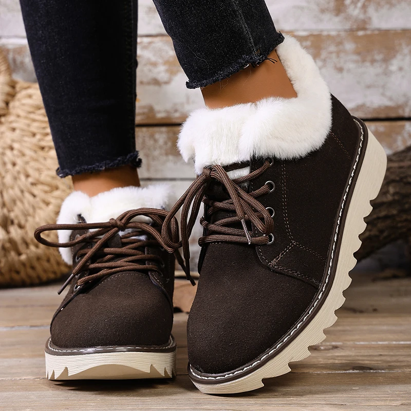 Discover warmth and style with these premium snow boots designed for the modern woman. Featuring a cozy plush lining and reinforced non-slip sole, they deliver reliable traction on winter terrain. The lace-up closure ensures a customizable fit, while the thick cotton padding provides exceptional insulation during cold months. True-to-size construction means no guessing—just comfort from day one. Perfect for autumn and winter adventures, these ankle-height boots combine suede durability with practical functionality for everyday wear.